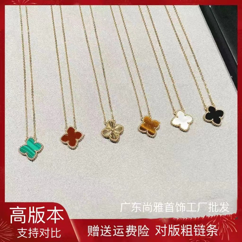 High Version V Gold Four-leaf Clover Necklace Female 18K Double-sided Natural Caracedony Pendant Clavicle Chain Saturn Live