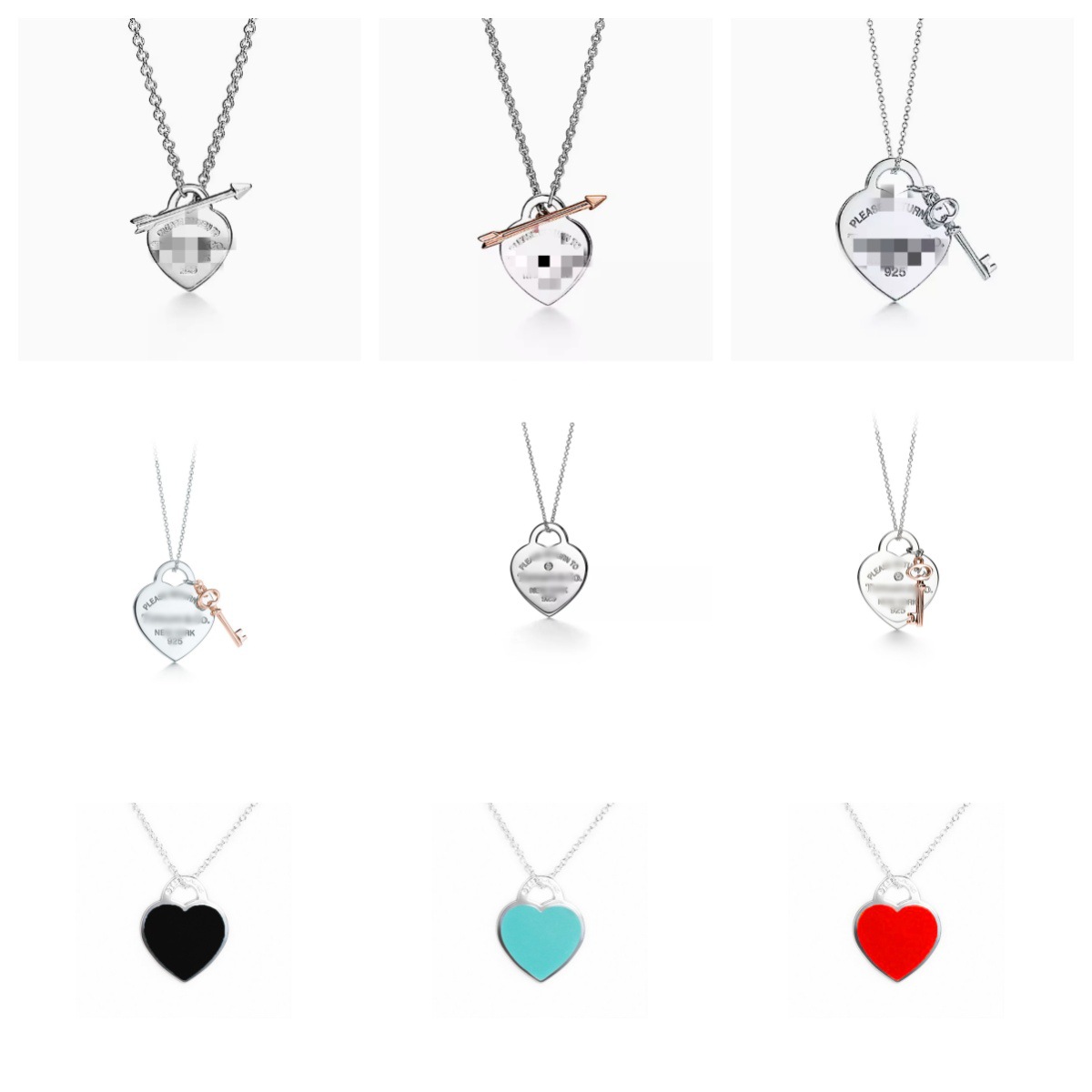 Cross-Border t Brand High-End Heart-Shaped Key Necklace, Fashionable Enamel Heart Pendant Jewelry, 2024 New Short Style