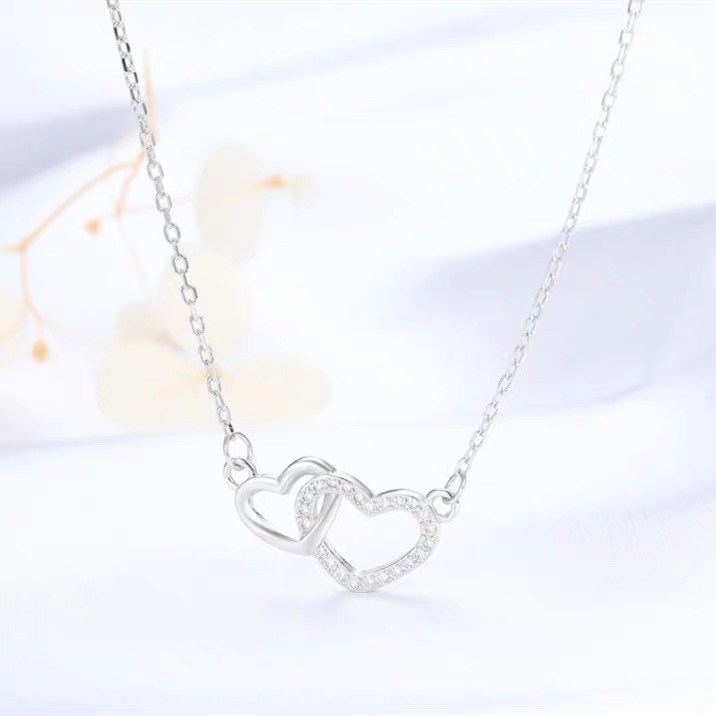 Micro-Inlaid Heart-Shaped Necklace for Women, Ins-Style Double Heart Pendant, Niche and Unique Design, Titanium Steel Clavicle Chain, Fashionable