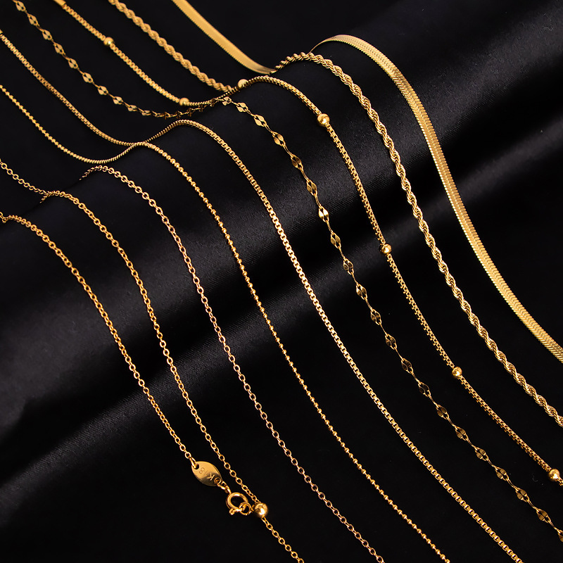 Titanium steel necklace female o-chain lip chain gold-plated 18k non-fading clavicle chain necklace plain chain factory wholesale