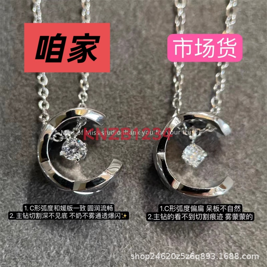 Xiaoxiang Feng Shui Ice Moon Necklace Women's Coco Diamond-encrusted Diamond Plaid Moon Pendant All-match Clavicle Chain Live Daifa