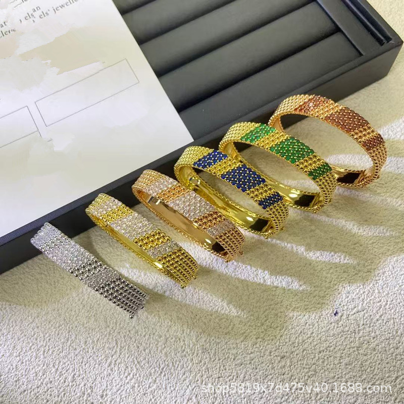 Fanjia High Version Four-Leaf Clover Perlee Small Gold Bead Bracelet Gold Five-Row Kaleidoscope Diamond Bracelet for Women 18K