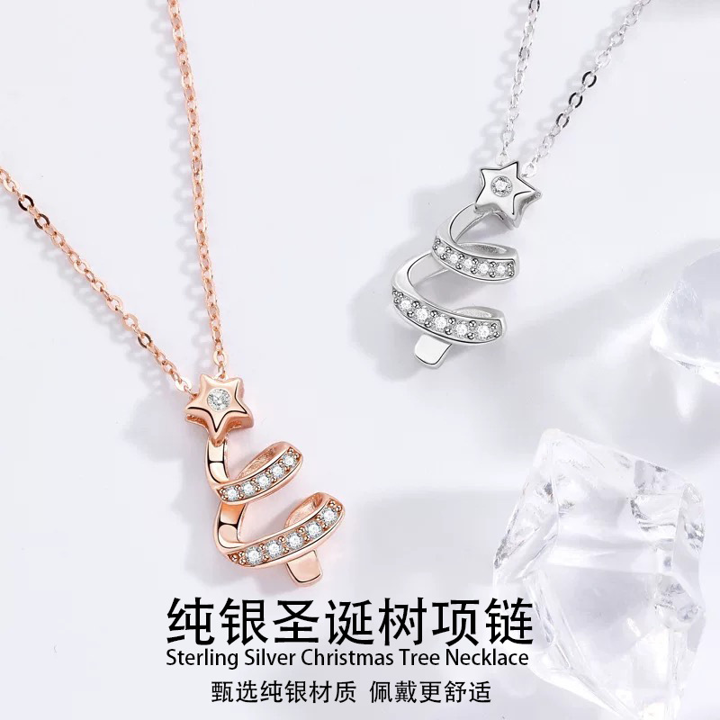 S925 Sterling Silver Christmas Tree Necklace for Women, Light Luxury and High-End Autumn and Winter Sweater Chain Accessory, 2025 New Clavicle Chain