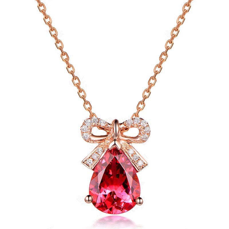 New Sweet and Fashionable Bow Inlaid Zircon Rose Red Colored Gemstone Simulated Tourmaline Pendant Girls Jewelry