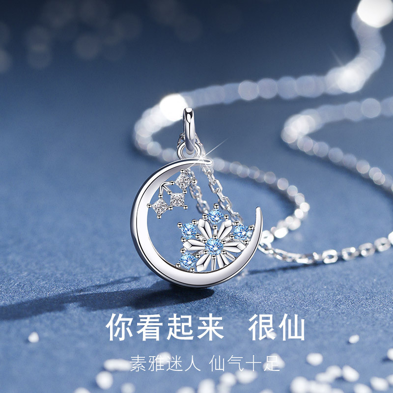 Moon Snowflake Necklace for Women 2021 Internet Celebrity Live Broadcast New Style Light Luxury Pendant Titanium Steel Snowflake Clavicle Chain for Women