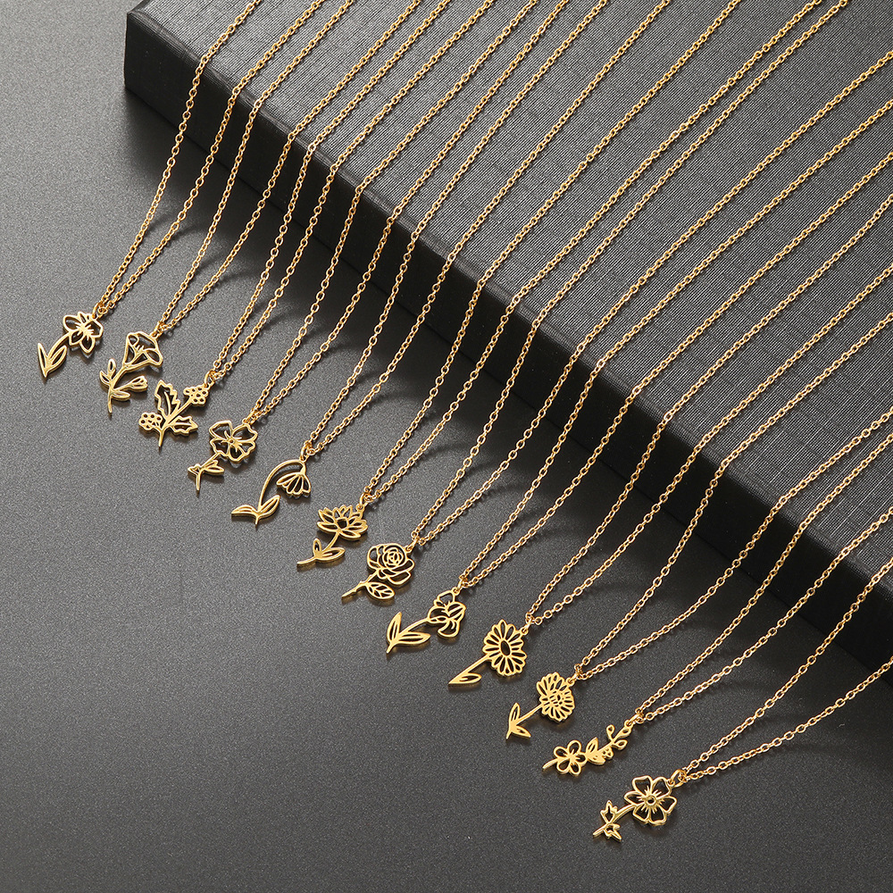Cross Border AliExpress Fashion Hot Selling Stainless Steel Birthday Moon Flower Necklace Snowdrop Daisy Rose Pendant Neck Chain