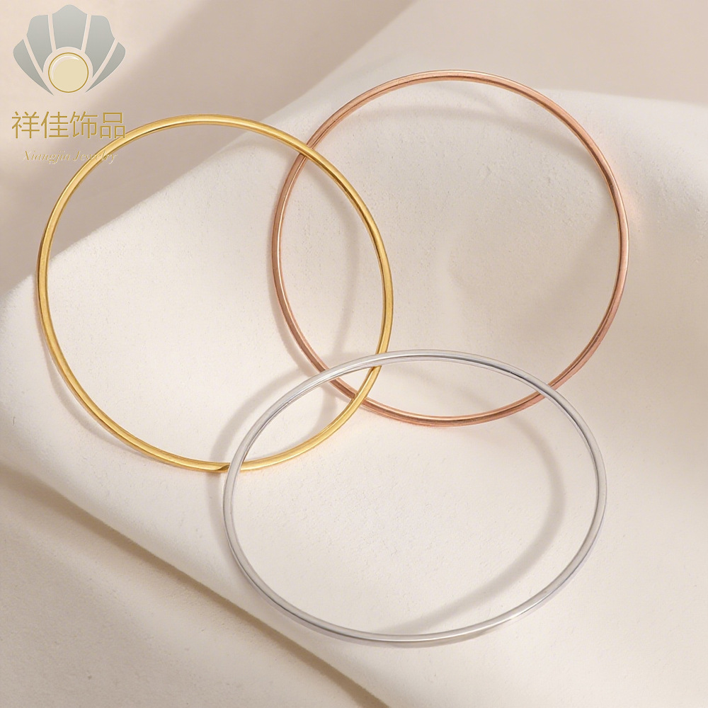 Cross-Border Japanese and Korean Style Plain Ring Three-Color Titanium Steel Bracelet Retro Simple Versatile Stainless Steel Bracelet Ins Style Hand Jewelry for Women