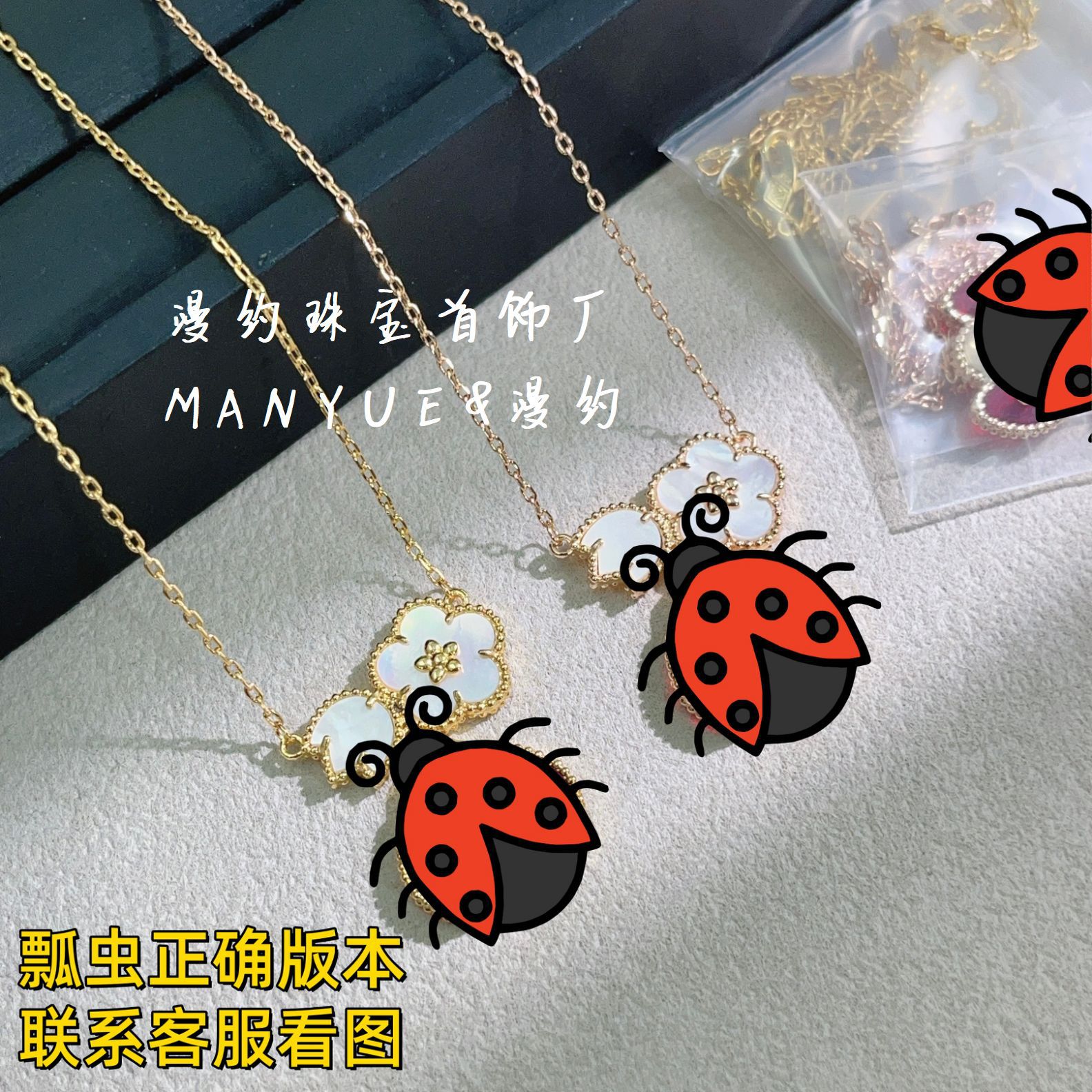 High-Quality Matching Five-Flowered Ladybug Necklace Thickly Plated with 18K Gold Old Money Style High-End European and American Popular Clavicle Chain