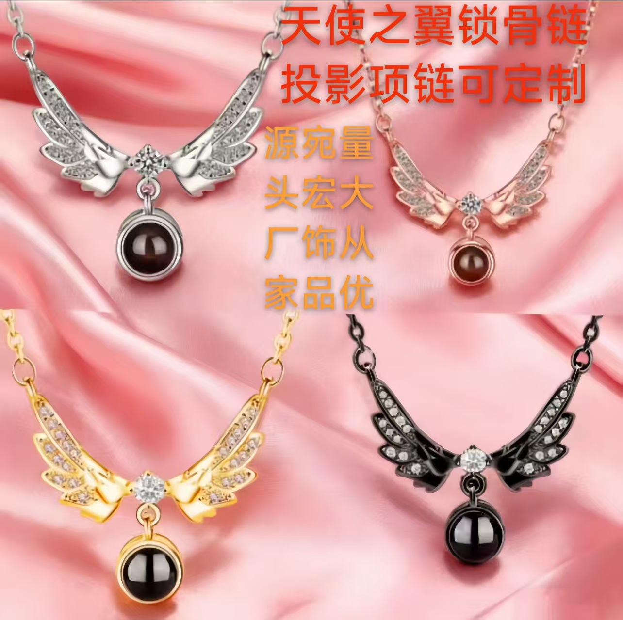European and American Cross-Border Small Jewelry Accessories Angel Wings Necklace Accessible Luxury Wings Projection Customized Picture Factory Direct Sale
