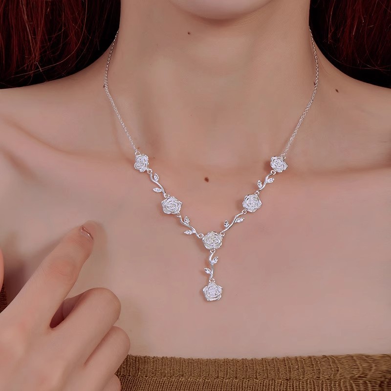 New 925 sterling silver rose necklace for Women summer simple light luxury niche design cold style clavicle chain