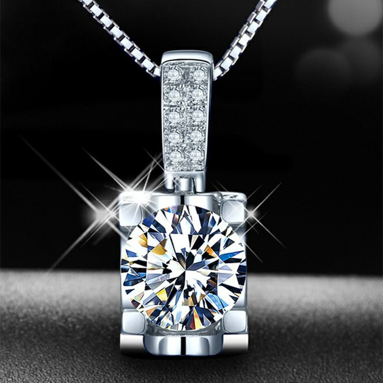 Niutou Necklace Women's Single Diamond Pendant 2 Karat Light Luxury Clavicle Chain with Zircon Elegant Fashion 925 Stone All-match