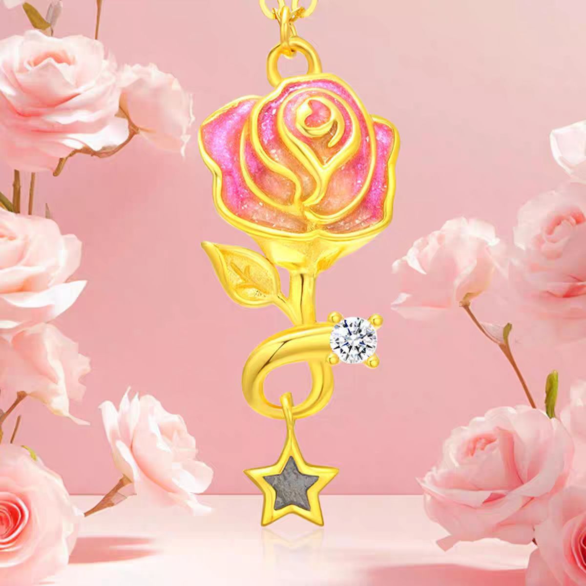 New Aerospace Meteorite Diamond Space Creation Yellow Rose Star Pendant Creative Dream Rose Necklace for Women