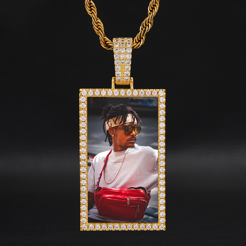 European and American Cross-border Hip-hop Memory Rectangular Photo Necklace Jewelry Micro-inlaid Zircon Trendy Photo Frame Pendant Accessories