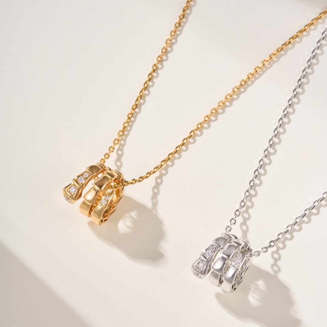 Baojia's New Snake Half-Diamond Necklace for Women, Light Luxury Head and Tail Diamond Fashion Three-Circle Snake-Shaped Diamond Clavicle Chain