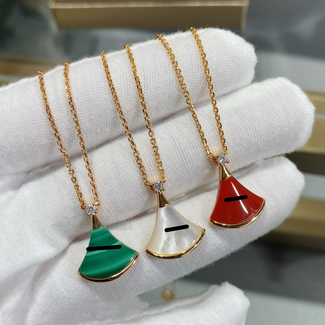 Baojia V Gold High Version Small Skirt Necklace for Women Inlaid with Natural Mother-Of-Pearl Fan-Shaped Pendant Clavicle Chain for Girlfriend