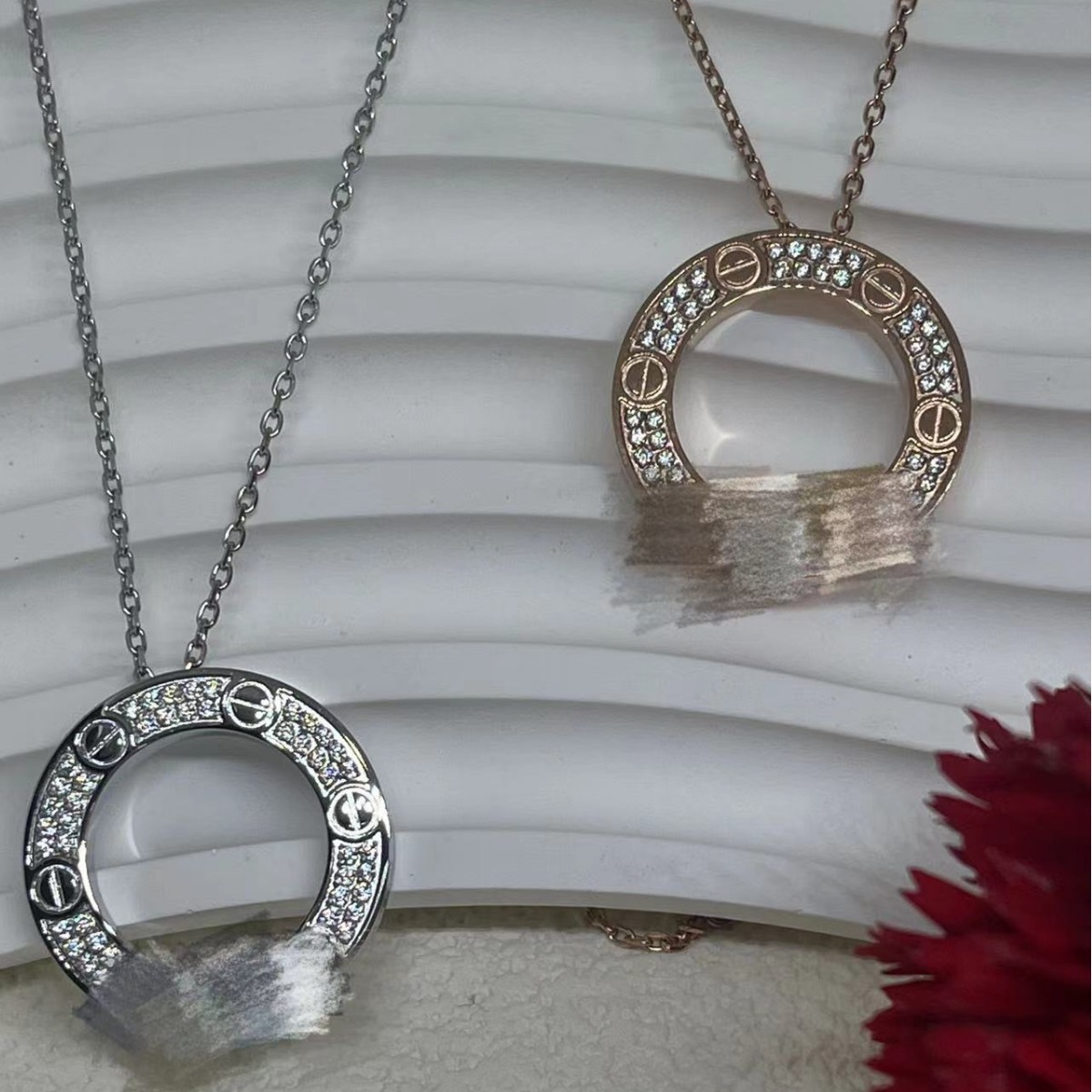 New Rose Gold Titanium Steel Mosan Diamond Cake Necklace Light Luxury Niche High-end Design LOVE Jewelry