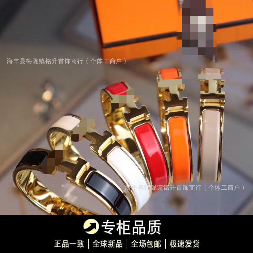 Aijia H Ultra-Narrow Enamel Letter Bracelet for Women 18K Rose Gold Accessible Luxury High-End Design Closed Couple Bracelet
