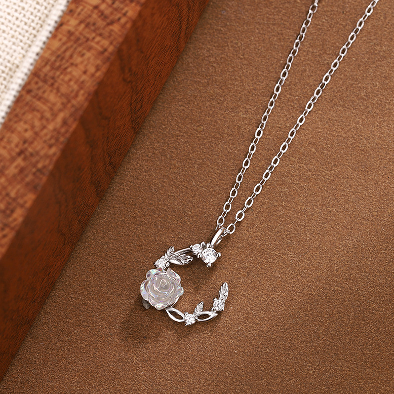 Yumei Elegant Fairy Wind Wreath Necklace Women's S925 Sterling Silver Magic Rose Crescent Clavicle Chain Versatile Jewelry