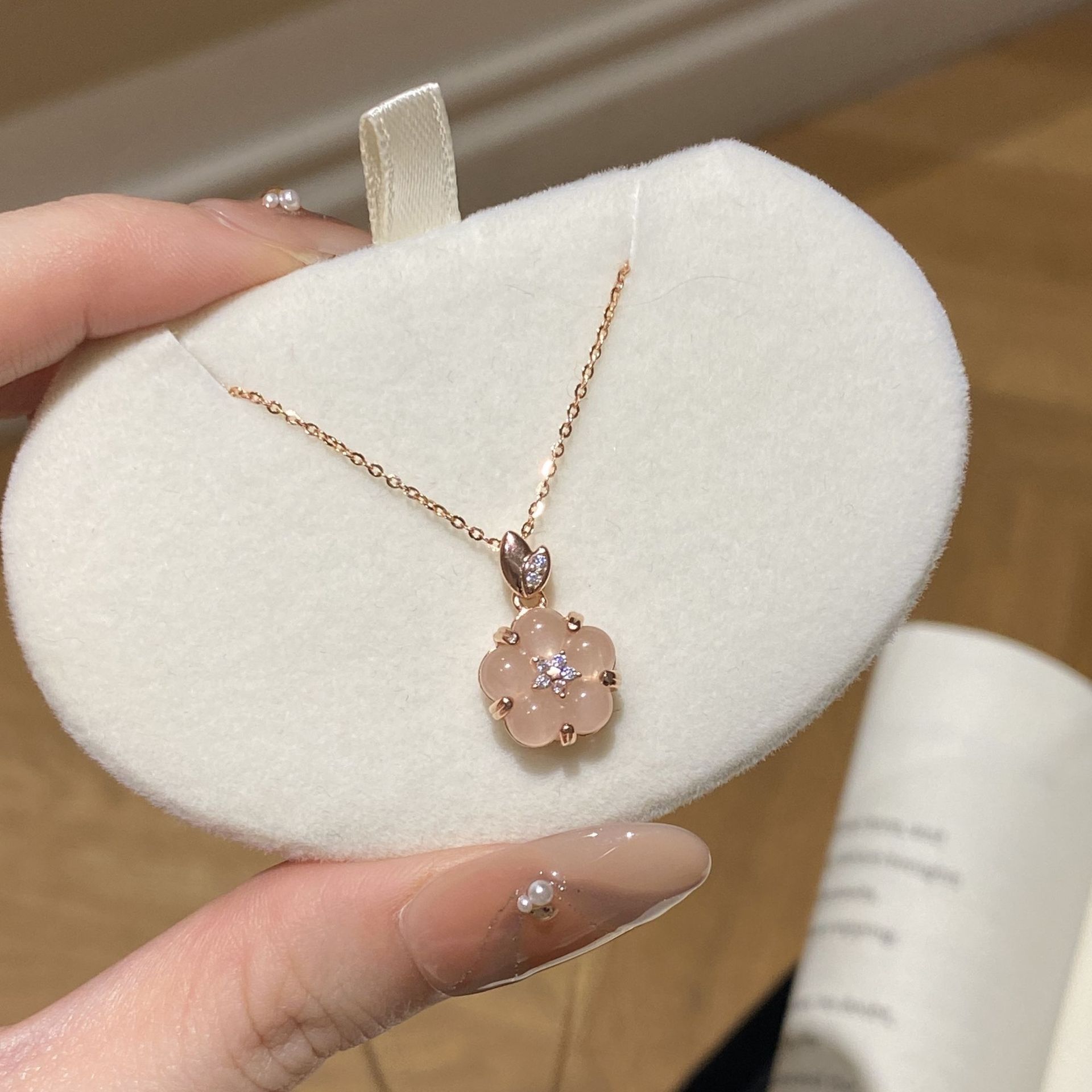 S925 Sterling Silver Gold-plated Rose Necklace Women's Simple Student ins Mori Pendant Clavicle Chain Live Supply
