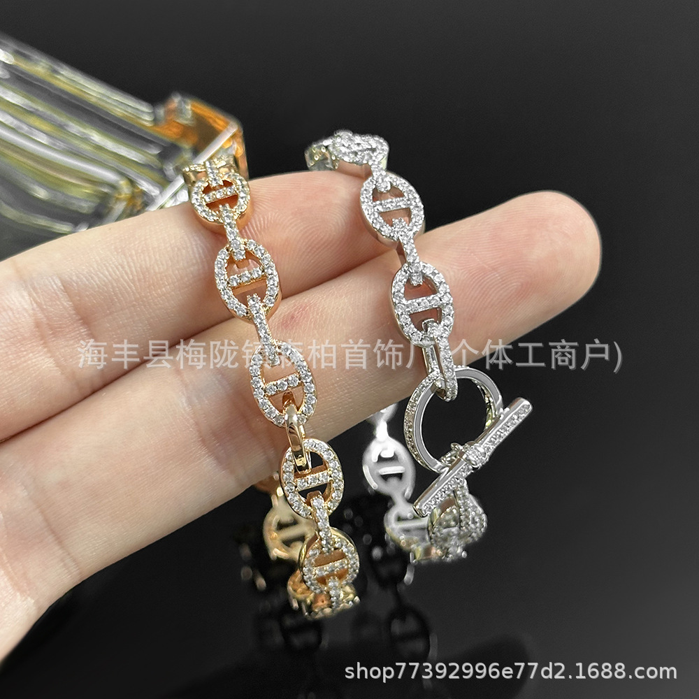 2024 New Love Home Full of Diamond Pig Nose Ot Buckle Half Bracelet Women's High-end Fashion Bracelet Light Luxury All-match Bracelet