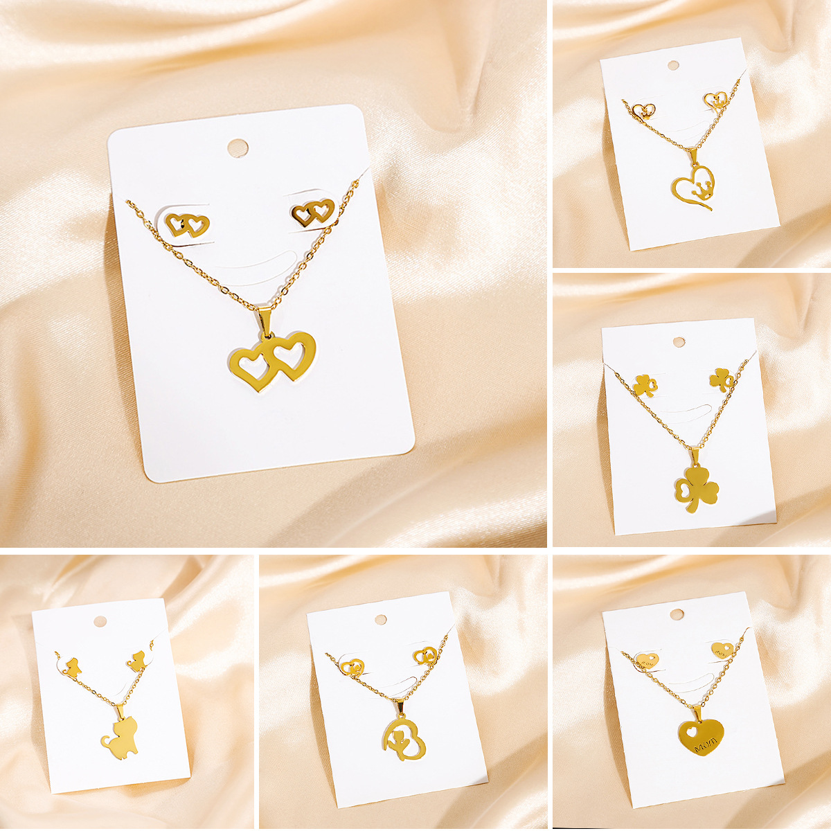 European and American Personalized Metal Style Geometric Heart Clavicle Chain Earring Set Cross-Border Stainless Steel Design Fashion Necklace