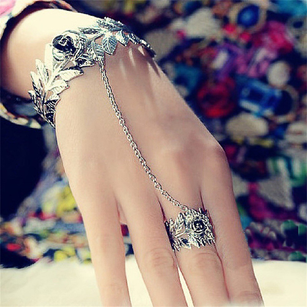 Vintage fashion carved rose flower leaves open bracelet ring suit jewelry wholesale manufacturers wholesale