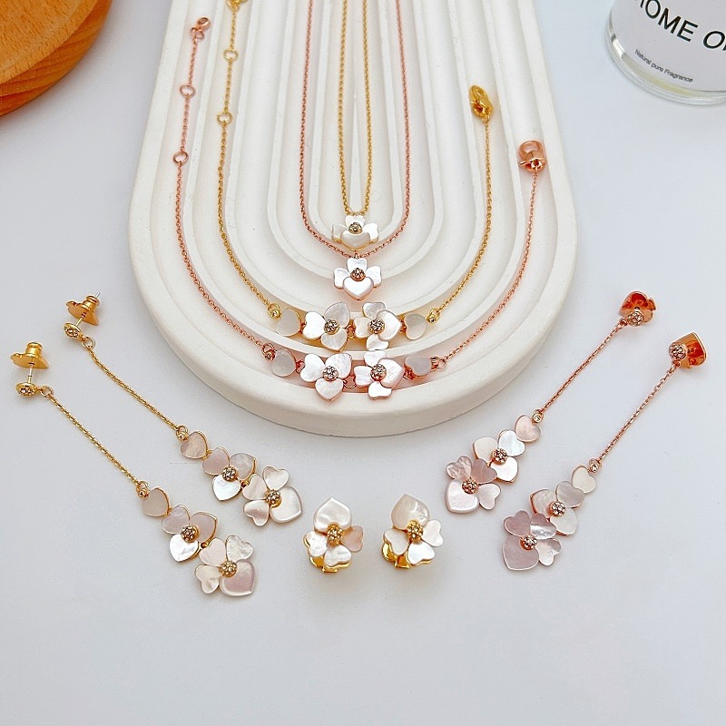 New Product Inlaid with Natural Shell Flower Necklace, Fresh and Sweet Mother-Of-Pearl Four-Leaf Clover Bracelet, Elegant Earrings and Earrings for Women