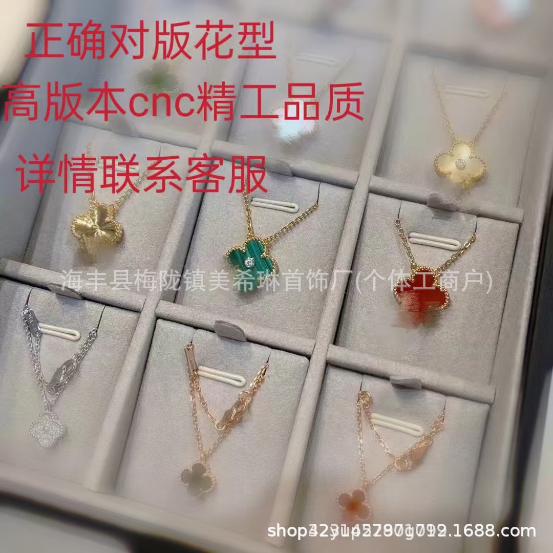 High-End Four-Leaf Clover Necklace for Women Cnc Finely Carved Thin Flower V Gold Clavicle Chain Sweater Chain Classic Versatile Live Supply