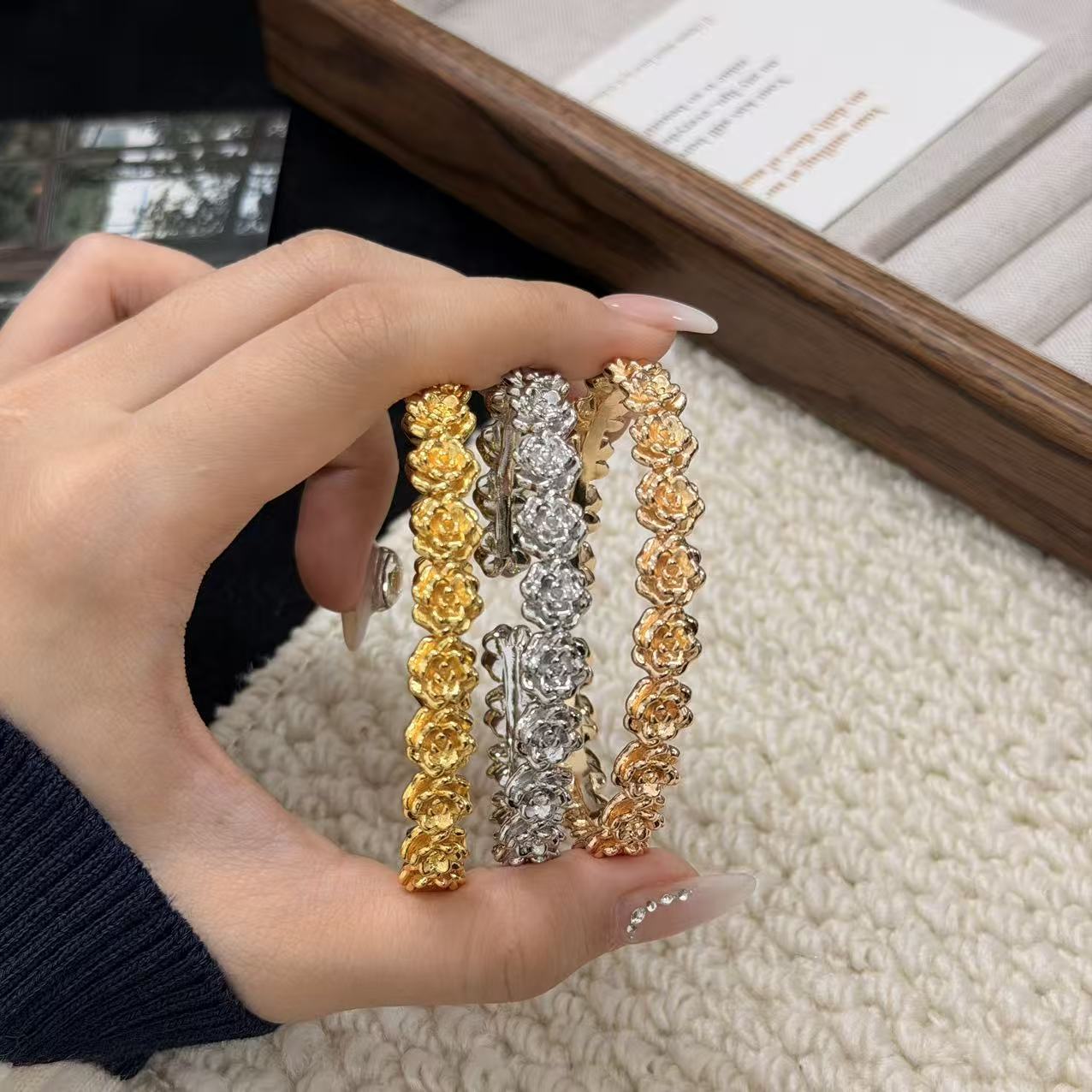 Popular Retro Palace Style Three-Dimensional Rose Bracelet Light Luxury Versatile Niche Design High-End Jewelry Wholesale