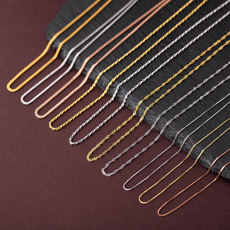 S925 Silver Gold Plated silver Necklace Pin Box Chain Chopin Chain Twist Chain Water Corrugated Chain Pendant DIY Chain