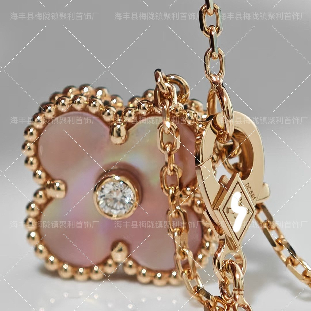 High Version V Gold 25Th Christmas Limited Edition Four-Leaf Clover Necklace Silver Plated 18K Rose Gold Pink Mother-Of-Pearl Clavicle Chain