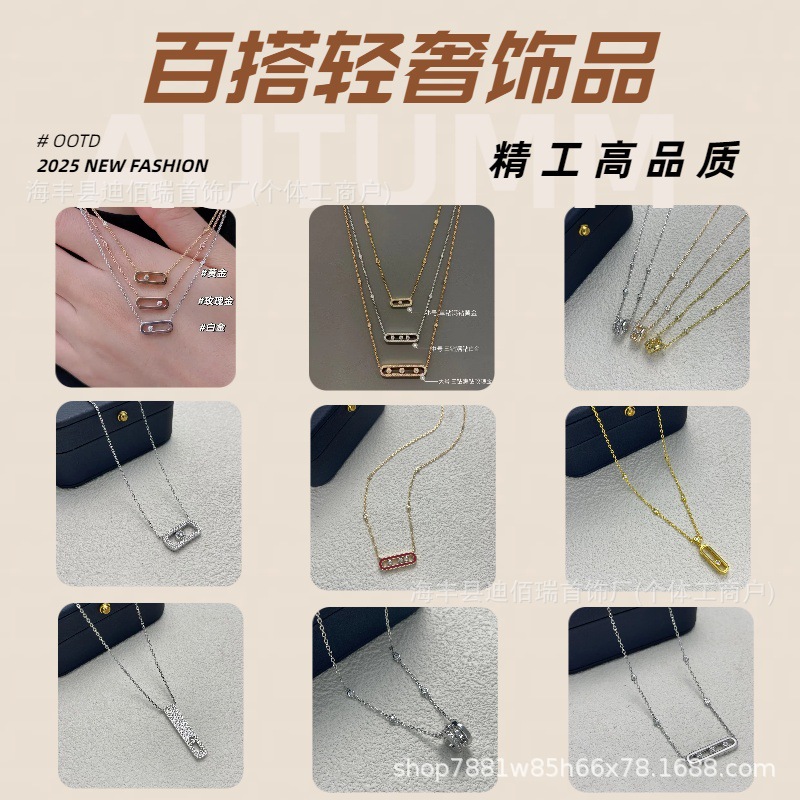 25 Mei Jia Xika V Gold High-Quality Matching Single Diamond Three Diamond Sliding Necklace for Women, Light Luxury Cross-Border Collarbone Chain Wholesale