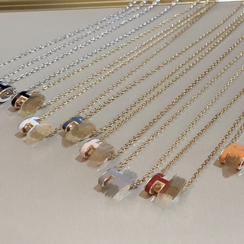 Cnc Process High-End Version V Gold Love Home H Necklace for Women, Tiktok Popular Enamel Letter Plated 18K Pendant That Does Not Fade