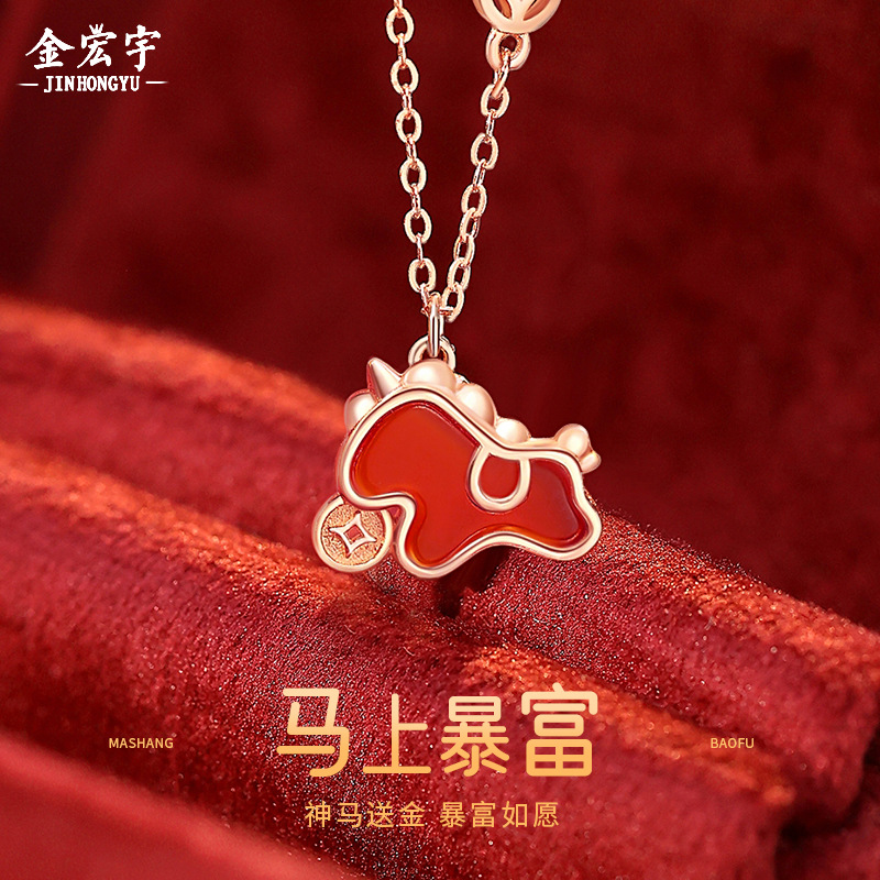 Original Get Rich Coin Cute Horse Necklace Sterling Silver New Chinese Style Year of the Horse Zodiac Year Red Agate Unicorn Pendant
