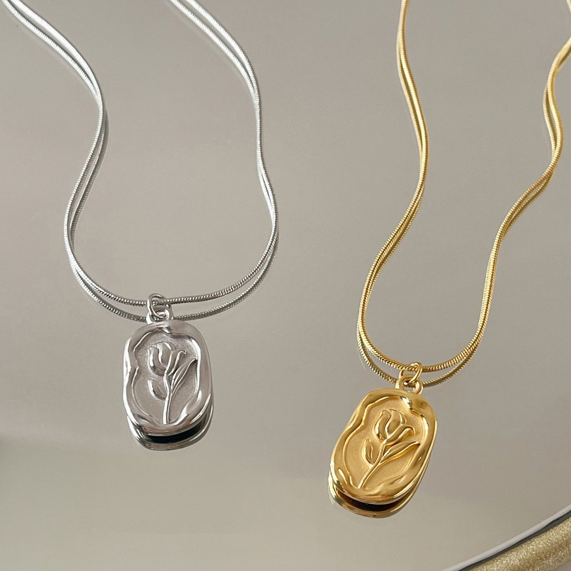 French retro new embossed elegant rose pendant titanium steel necklace gold plated color retaining necklace autumn and winter clavicle chain