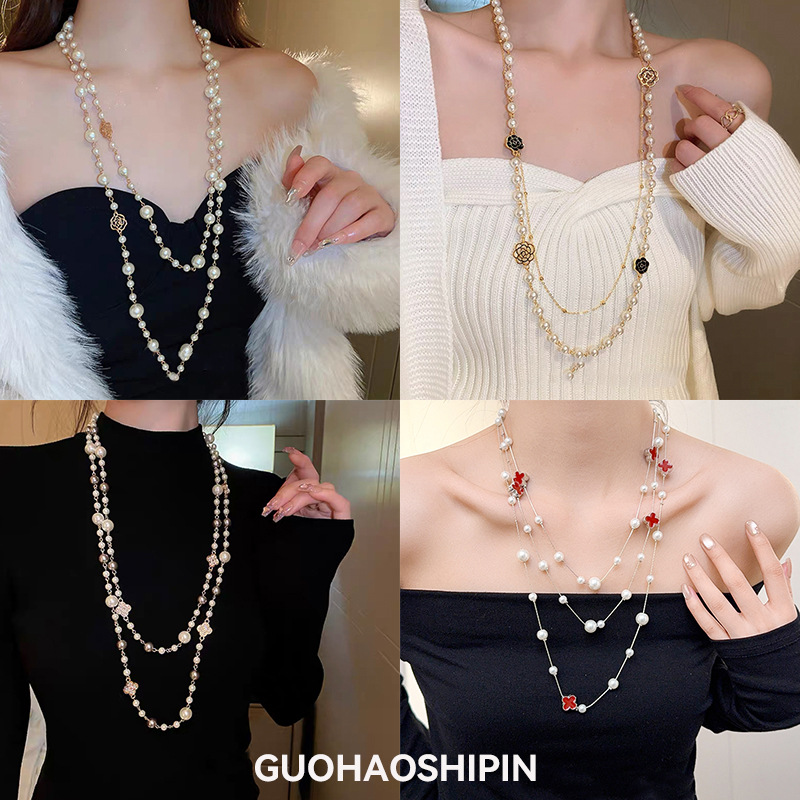 Light Luxury Style Stacked Pearl Necklace, High-End Autumn and Winter Sweater Chain, Women's Fashionable and Cool Design, European and American Cross-Border Jewelry