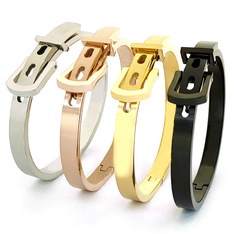 Korean Style European and American Women's Belt Buckle Bracelet, Available in Multiple Colors, Titanium Steel, Stainless Steel Wholesale, Rose Gold Geometric Elements
