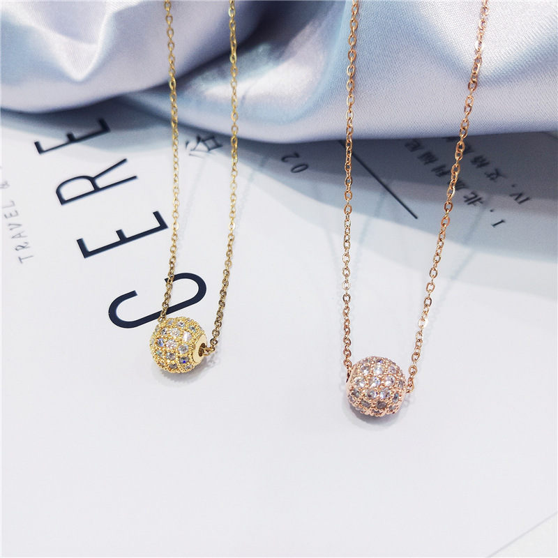 Titanium Steel Colorless Micro-Inlaid Transfer Ball Light Luxury Necklace for Women, Internet Celebrity Clavicle Chain, Niche Simple Temperament Personality Pendant