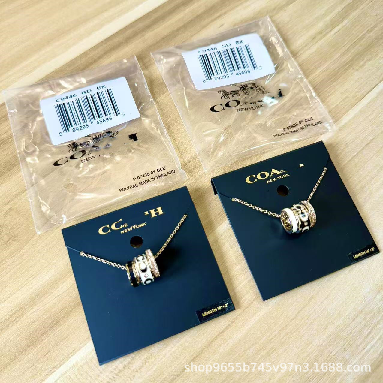 COA Kojia Drop Glue Enamel Black and White Triple Ring Double C Word Diamond Necklace Women's Counter Quality Pink Blue Double Ring Clavicle Chain