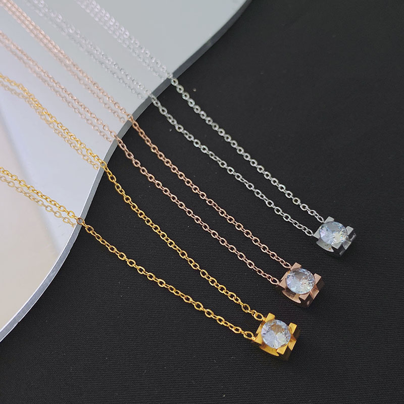 Simple Classic Four-claw Single Diamond Titanium Steel Necklace Women's All-match Niche Design High-end Internet Popular Clavicle Chain Trendy Jewelry