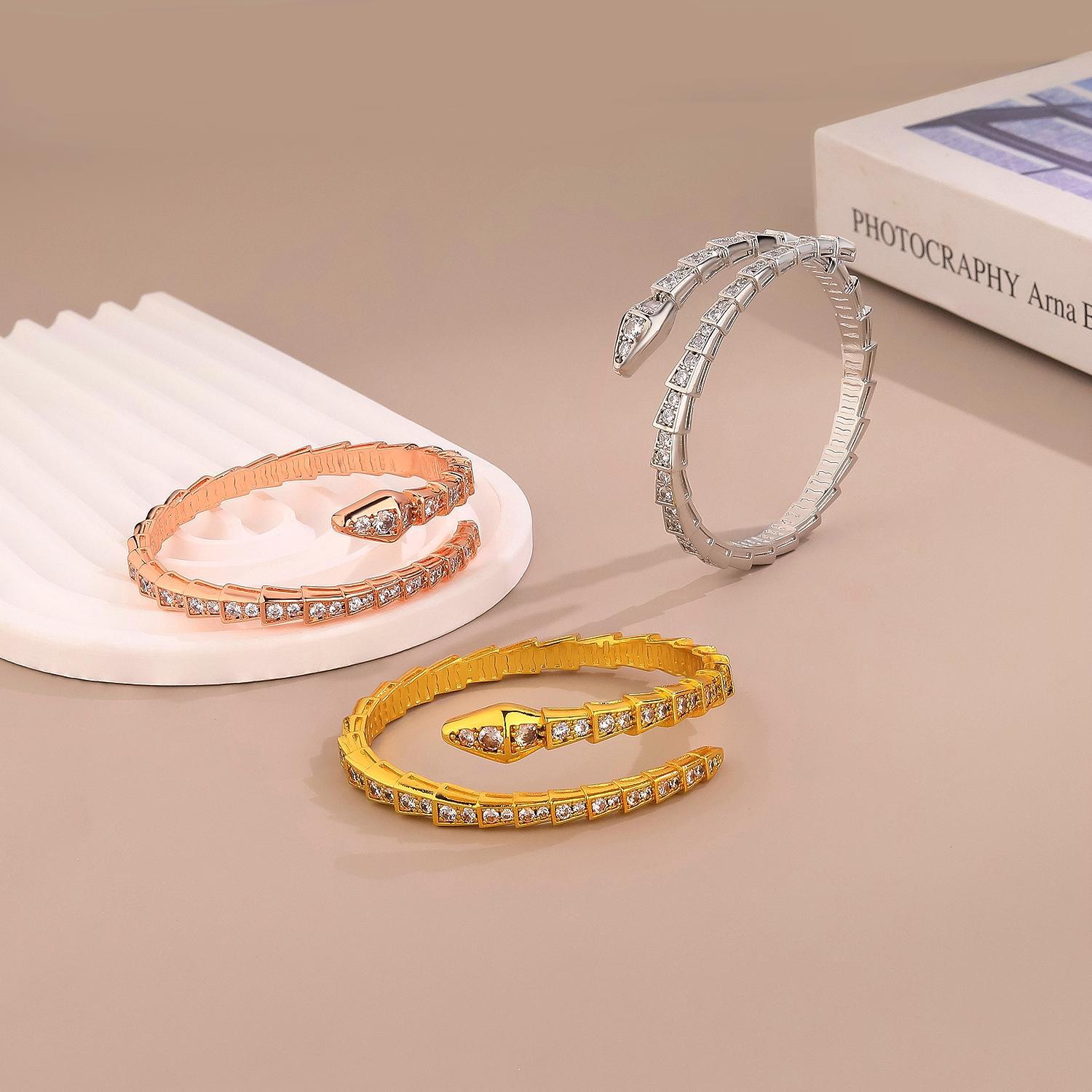 Snake Bamboo Bracelet Women's Fashion High-end Full Diamond Design Niche Elegant All-match Opening Adjustable Bracelet
