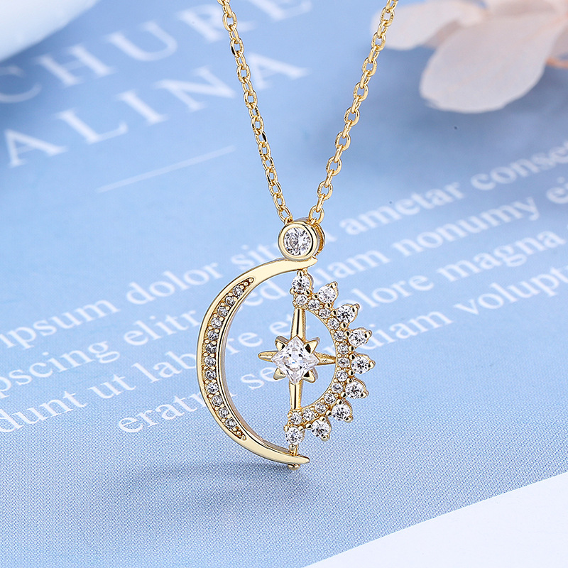 Cross-border Europe and the United States Hot Sale Heart of the Sun and Moon Necklace Women's Fashion Pendant Rotatable Personality Niche Design Sense Clavicle Chain
