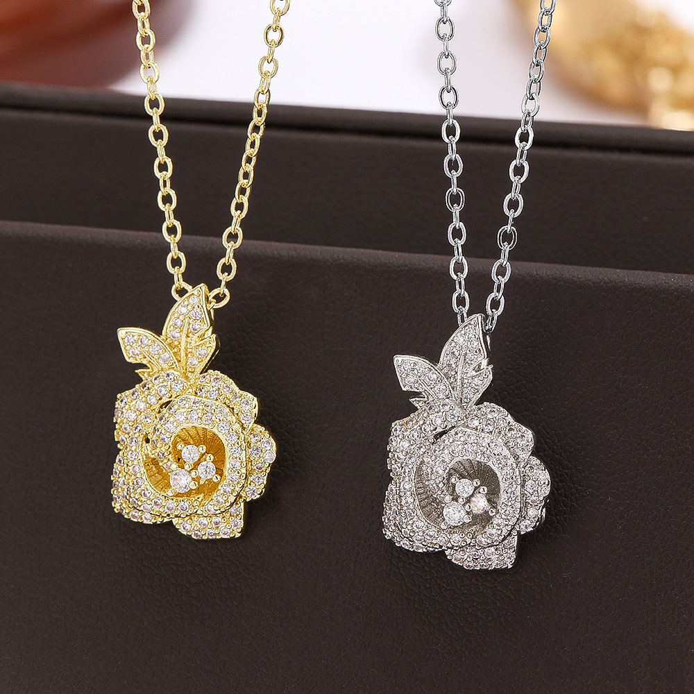 Super Fairy Rose Zircon Flower Necklace Women's Accessible Luxury High-End Elegant Accessories Versatile Niche Pendant Necklace