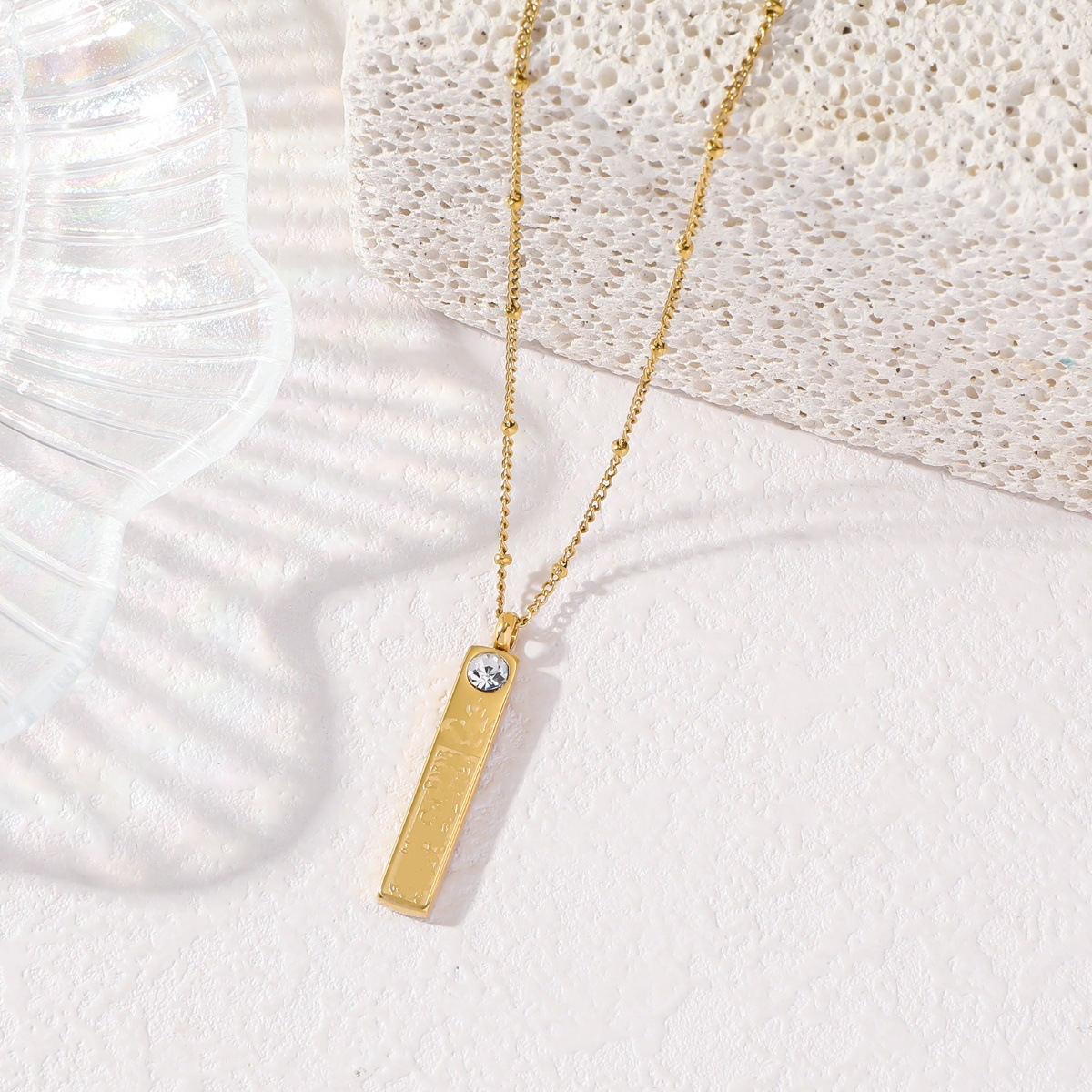 Simple Titanium Steel Pendant Necklace with Cubic Lettering, Long Women's Necklace with Diamonds, Stainless Steel Three-Dimensional Stick Jewelry