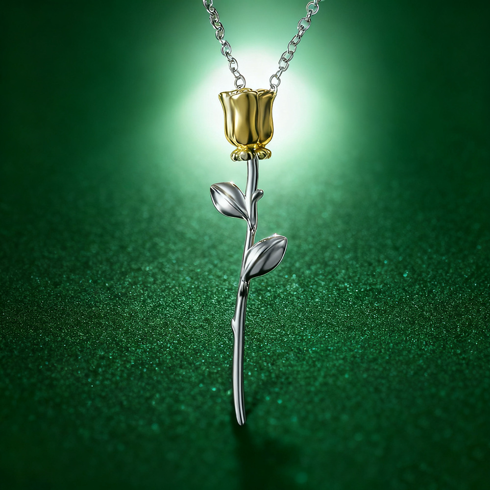 Korean Necklace 925 Silver Necklace Cool Retro Gold-Plated Creative Stylish Color-Separated Rose Pendant Jewelry Gift