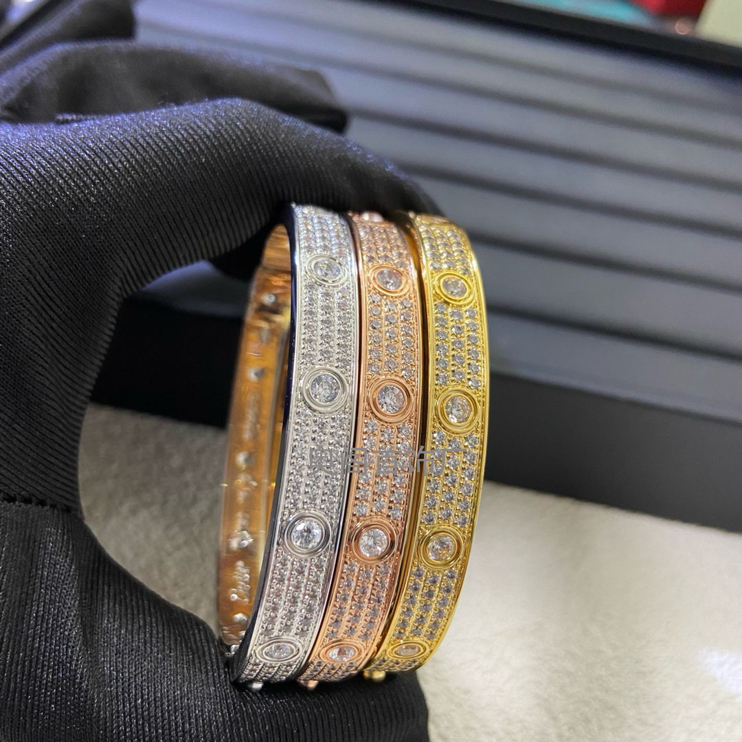 Cnc High-End Baby's Breath Bracelet for Women with Three Rows of Diamonds, 18K Rose Gold Color, Men's Wide Version with Clasp
