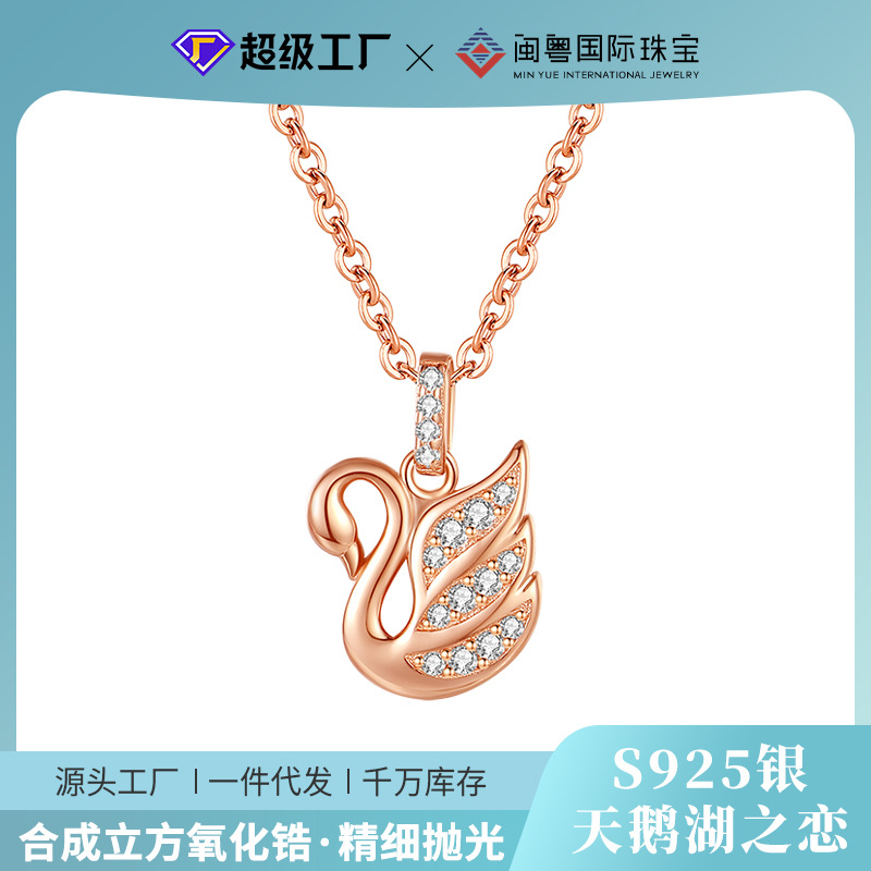 Zircon-Encrusted Swan Pendant for Women, S925 Silver Clavicle Chain, Light Luxury Niche Design Necklace Jewelry, Cross-Border Wholesale