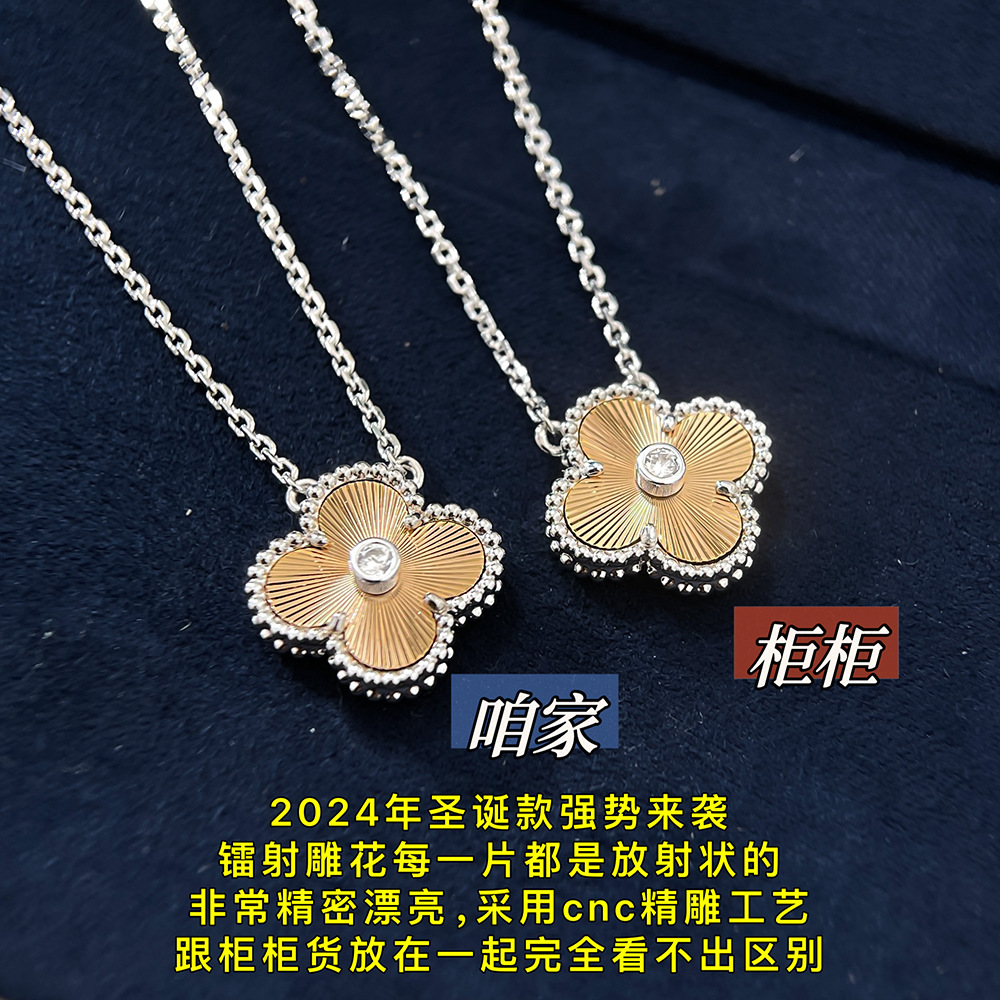 2024 Christmas Limited Edition Four-Leaf Clover Necklace Plated with 18K Rose Gold and White Gold Two-Color Laser Diamond Clavicle Chain