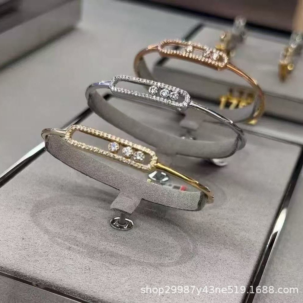 Messika Mobile Bracelet for Women with Three Diamonds, Sliding Rose Gold Bracelet, Cross-Border 2025 New Original Design