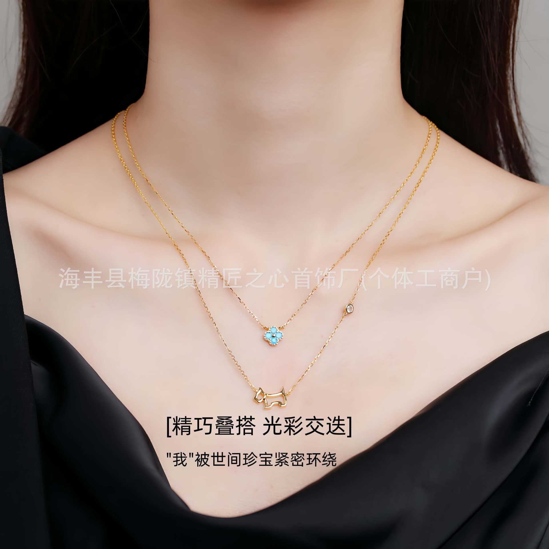 France AG/Ai Jiasha 925 Silver Hollow Puppy Niche Light Luxury Collar Chain Women's Fashion Overlapped Versatile Necklace